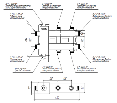 Балансировочный коллектор GIDRUSS ВМ-80-3DU.EPP (до 80кВт, G 1 1/4", 1+1=1"+1 1=1/4") в изоляции