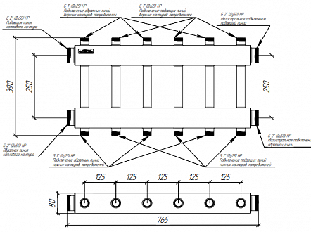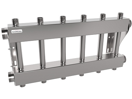 Модульный коллектор GIDRUSS из нерж.стали MKSS-250-6DU (до 250кВт, G2", 3+3 контура G 1")